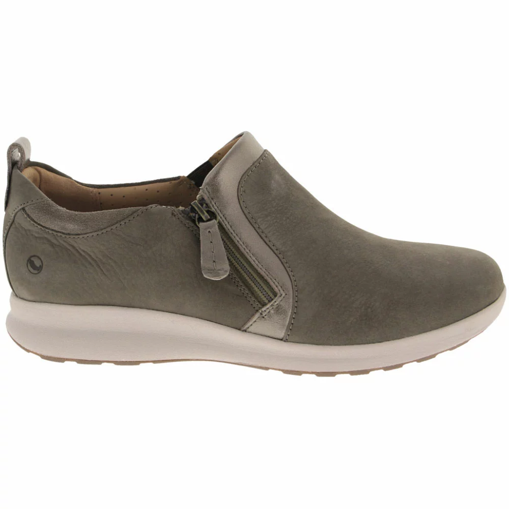 Unstructured by Clarks Adorn Zip Women’s Slip on Casual Shoes. Get the look of a classic, versatile shoe that feels like a favorite sneaker with these womens slip on casual shoe. Their simple, stylish upper features different materials to add a subtle visual appeal that makes them suitable for jeans or an everyday skirt or dress. They easily slip on and off thanks to a sleek side zipper. The heart of these shoes is their wearability. An EVA midsole and cushioned footbed keep you moving in comfort all day.