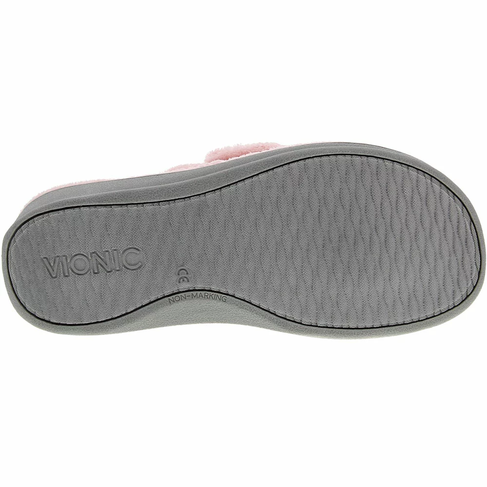 Vionic 26 Relax Slippers – Womens. Take your comfort to a whole new level in Vionic’s Relax Slipper. Its features include a flexy EVA midsole, integrated orthotic footbed and hook-and-loop closure for a perfectly adjustable fit. Proprietary Orthaheel technology delivers traditional activewear-style support in this casual loungewear option, and the faux fur design creates a plush, comfy nest you will love sliding your feet into every day.